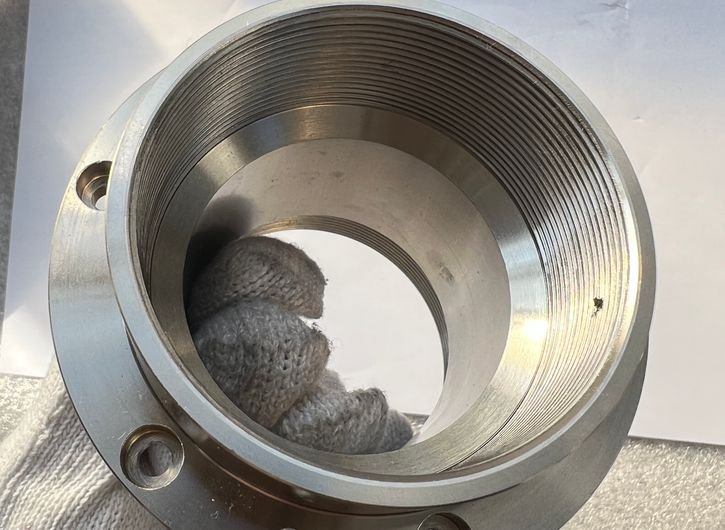 Feature: Integrated flange and sleeve structure with internal precision threads for secure connection and sealing