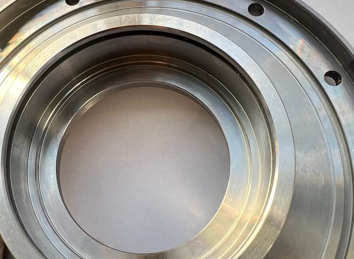 Central stepped bore with precision internal threads for component connection and sealing